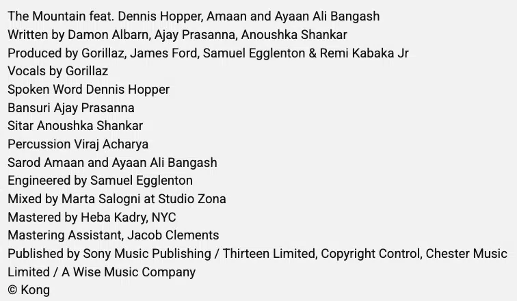 In the screenshot below, once again see in part how the musical group the Gorillaz include disclaimers on music videos for their newest album, The Mountain, which was collaborative in nature.
